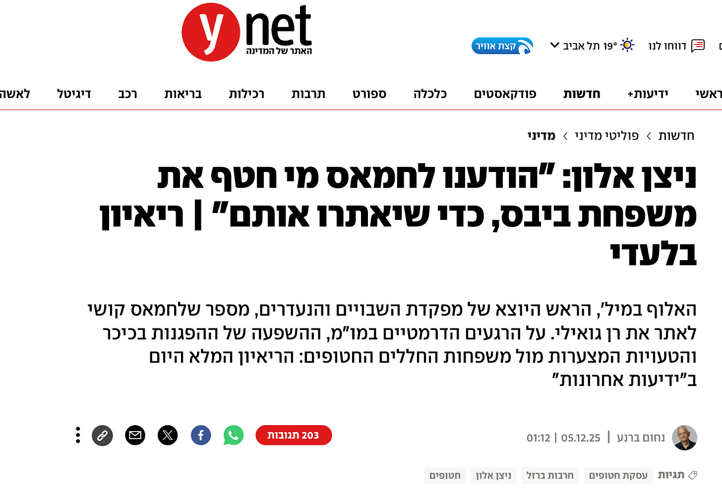 Después de servir dos años como jefe del Cuartel General de Rehenes y Personas Desaparecidas de Israel, es decir, de ser el principal responsable de recuperar a los israelíes cautivos en Gaza, vivos o muertos, el mayor general Nitzan Alon dejó el cargo y le dio una entrevista al popular diario Yediot Ahronot.