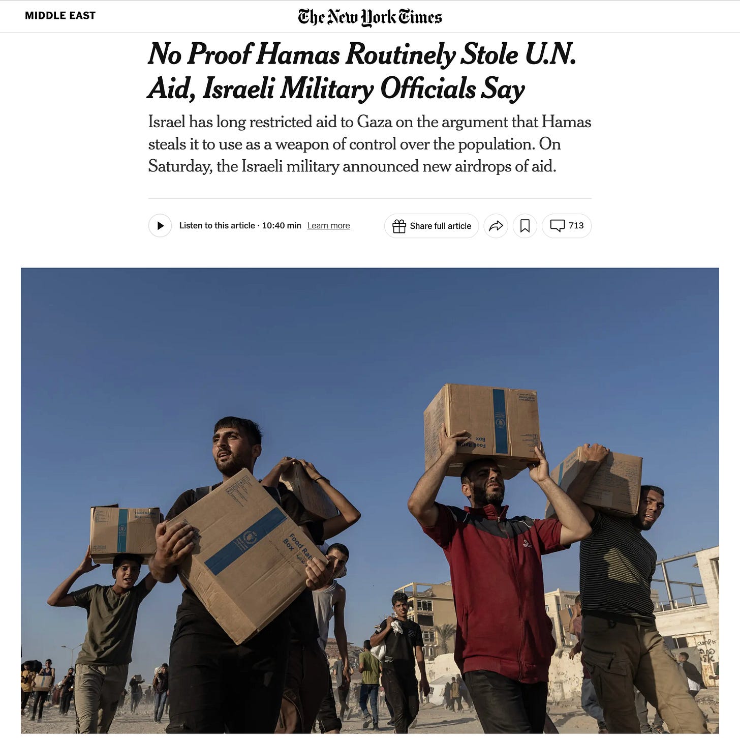 Y The News York Times, la de que Hamás robaba la asistencia: