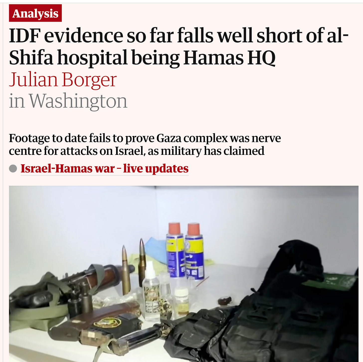 Además, las autoridades israelíes ya habían fabricado y difundido numerosas mentiras que después no probaron y de hecho no volvieron a mencionar, aunque como fueron repetidas por la prensa occidental, hasta hoy siguen siendo usadas por sus propagandistas, tales como la de “40 bebés decapitados”; la de que el cuartel general de Hamás estaba bajo el hospital Al Shifa; y la de que la población civil de Gaza no recibía la ayuda humanitaria porque Hamás se la robaba.