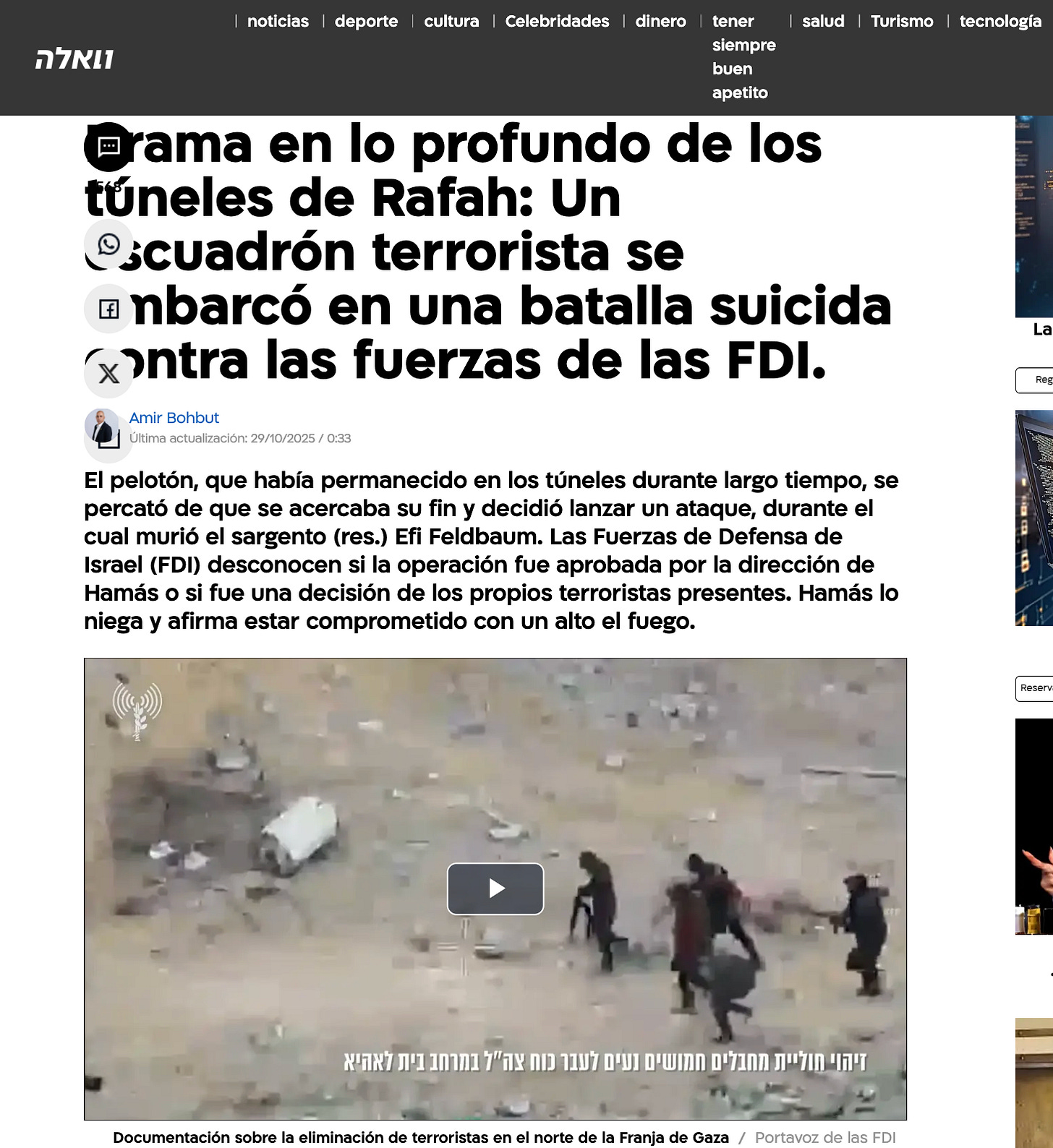 𝐸𝑙 𝑝𝑒𝑙𝑜𝑡𝑜́𝑛, 𝑞𝑢𝑒 ℎ𝑎𝑏𝑖́𝑎 𝑝𝑒𝑟𝑚𝑎𝑛𝑒𝑐𝑖𝑑𝑜 𝑒𝑛 𝑙𝑜𝑠 𝑡𝑢́𝑛𝑒𝑙𝑒𝑠 𝑑𝑢𝑟𝑎𝑛𝑡𝑒 𝑙𝑎𝑟𝑔𝑜 𝑡𝑖𝑒𝑚𝑝𝑜, 𝑠𝑒 𝑝𝑒𝑟𝑐𝑎𝑡𝑜́ 𝑑𝑒 𝑞𝑢𝑒 𝑠𝑒 𝑎𝑐𝑒𝑟𝑐𝑎𝑏𝑎 𝑠𝑢 𝑓𝑖𝑛 𝑦 𝑑𝑒𝑐𝑖𝑑𝑖𝑜́ 𝑙𝑎𝑛𝑧𝑎𝑟 𝑢𝑛 𝑎𝑡𝑎𝑞𝑢𝑒, 𝑑𝑢𝑟𝑎𝑛𝑡𝑒 𝑒𝑙 𝑐𝑢𝑎𝑙 𝑚𝑢𝑟𝑖𝑜́ 𝑒𝑙 𝑠𝑎𝑟𝑔𝑒𝑛𝑡𝑜 (𝑟𝑒𝑠.) 𝐸𝑓𝑖 𝐹𝑒𝑙𝑑𝑏𝑎𝑢𝑚. 𝐿𝑎𝑠 𝐹𝑢𝑒𝑟𝑧𝑎𝑠 𝑑𝑒 𝐷𝑒𝑓𝑒𝑛𝑠𝑎 𝑑𝑒 𝐼𝑠𝑟𝑎𝑒𝑙 (FDI) 𝑑𝑒𝑠𝑐𝑜𝑛𝑜𝑐𝑒𝑛 𝑠𝑖 𝑙𝑎 𝑜𝑝𝑒𝑟𝑎𝑐𝑖𝑜́𝑛 𝑓𝑢𝑒 𝑎𝑝𝑟𝑜𝑏𝑎𝑑𝑎 𝑝𝑜𝑟 𝑙𝑎 𝑑𝑖𝑟𝑒𝑐𝑐𝑖𝑜́𝑛 𝑑𝑒 𝐻𝑎𝑚𝑎́𝑠 𝑜 𝑠𝑖 𝑓𝑢𝑒 𝑢𝑛𝑎 𝑑𝑒𝑐𝑖𝑠𝑖𝑜́𝑛 𝑑𝑒 𝑙𝑜𝑠 𝑝𝑟𝑜𝑝𝑖𝑜𝑠 𝑡𝑒𝑟𝑟𝑜𝑟𝑖𝑠𝑡𝑎𝑠 𝑝𝑟𝑒𝑠𝑒𝑛𝑡𝑒𝑠. 𝐻𝑎𝑚𝑎́𝑠 𝑙𝑜 𝑛𝑖𝑒𝑔𝑎 𝑦 𝑎𝑓𝑖𝑟𝑚𝑎 𝑒𝑠𝑡𝑎𝑟 𝑐𝑜𝑚𝑝𝑟𝑜𝑚𝑒𝑡𝑖𝑑𝑜 𝑐𝑜𝑛 𝑢𝑛 𝑎𝑙𝑡𝑜 𝑒𝑙 𝑓𝑢𝑒𝑔𝑜.