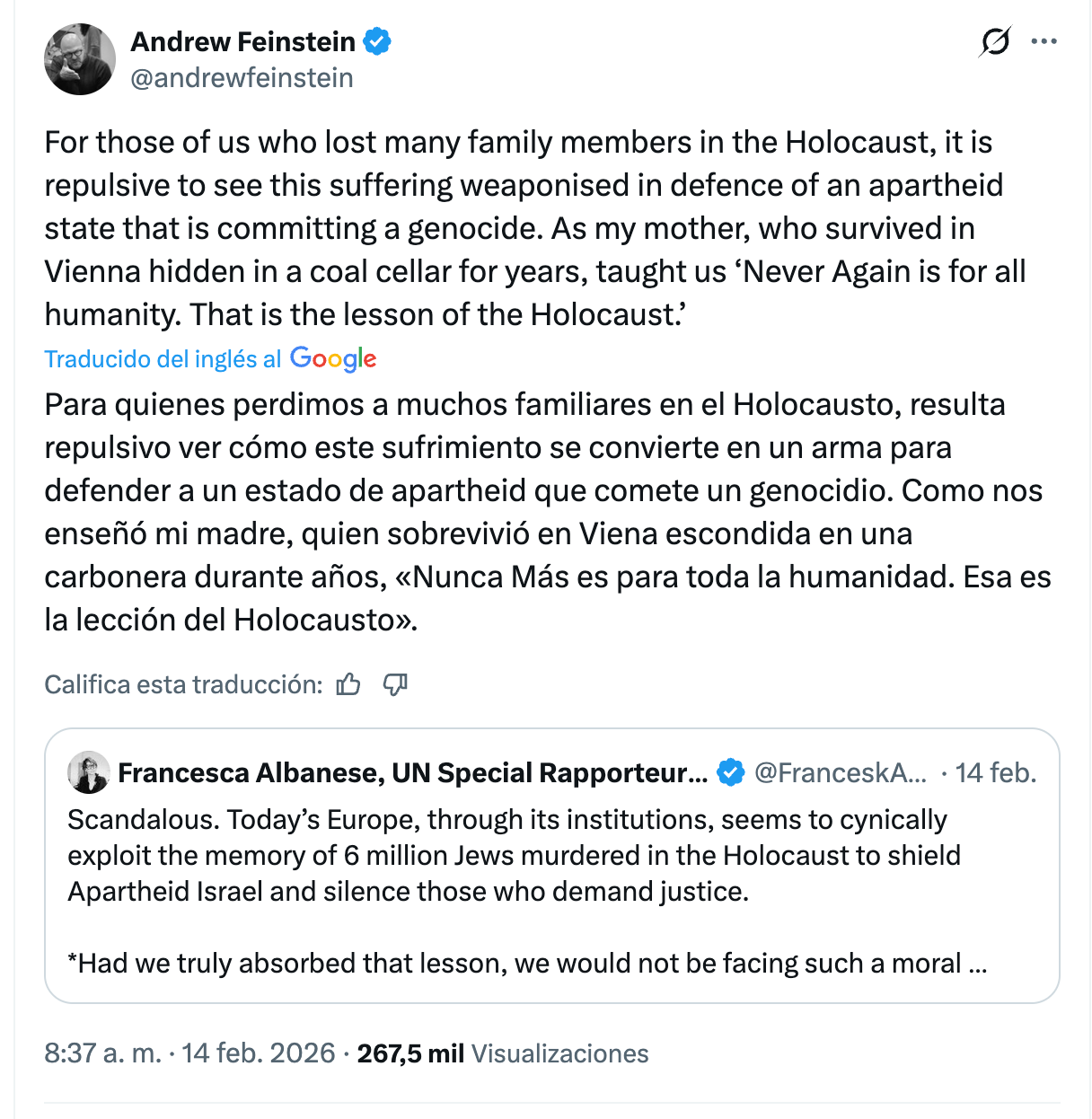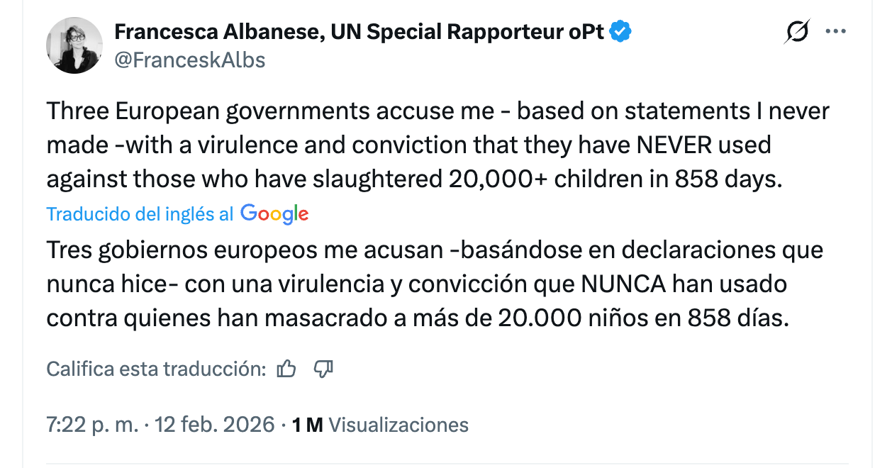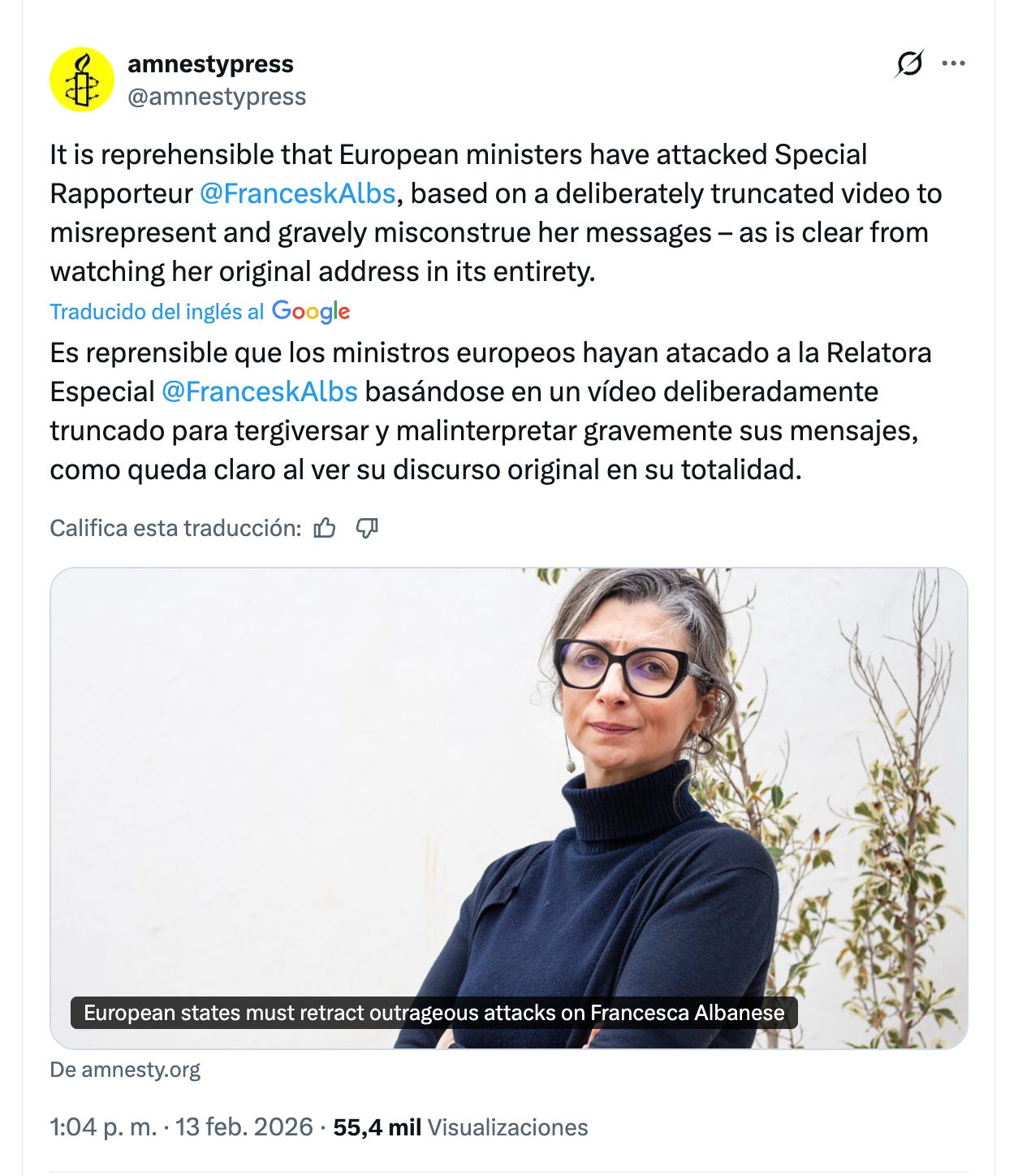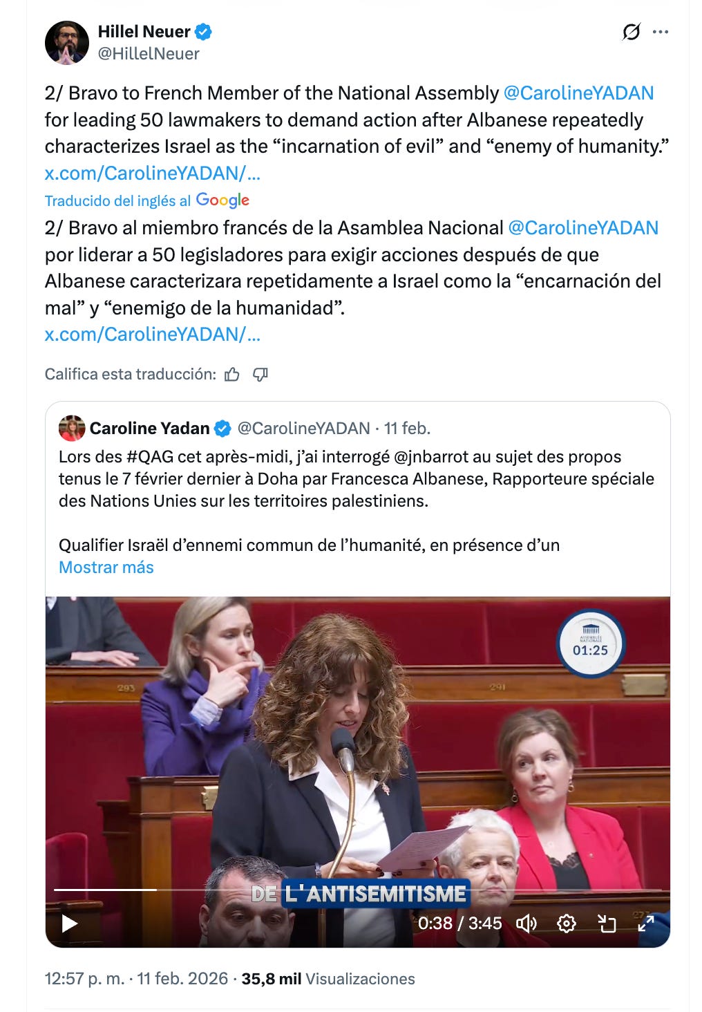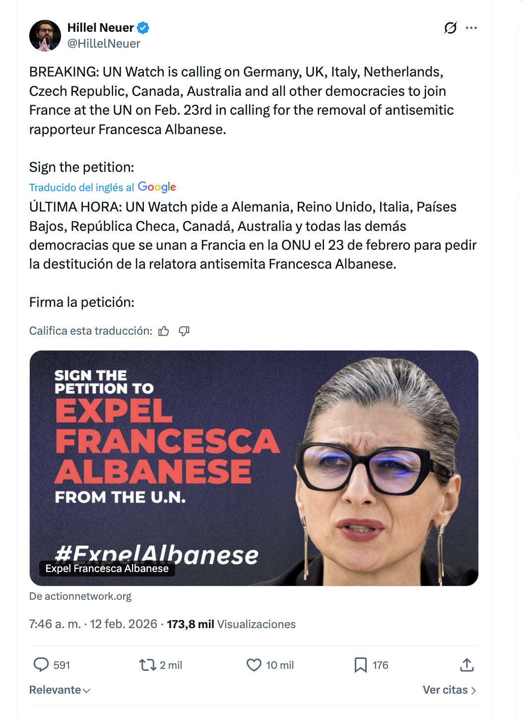 pero, claro. la relatora prefiere no señalar directamente a los sionistas talmudistas que han orquestado todo esto; sino que, prefiere señalar a los intereses privados como ese sistema detrás de las desgracias humanas, como la guerra. se dice que en la guerra nadie gana, a excepción de la industria armamentística y sus cómplices.