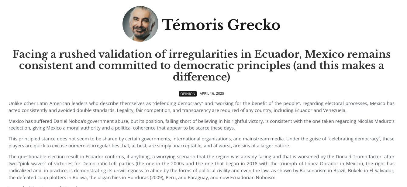 Ecuador: Ante una validación apresurada de irregularidades, México mantiene coherencia y compromiso con los principios democráticos (y eso hace la diferencia)