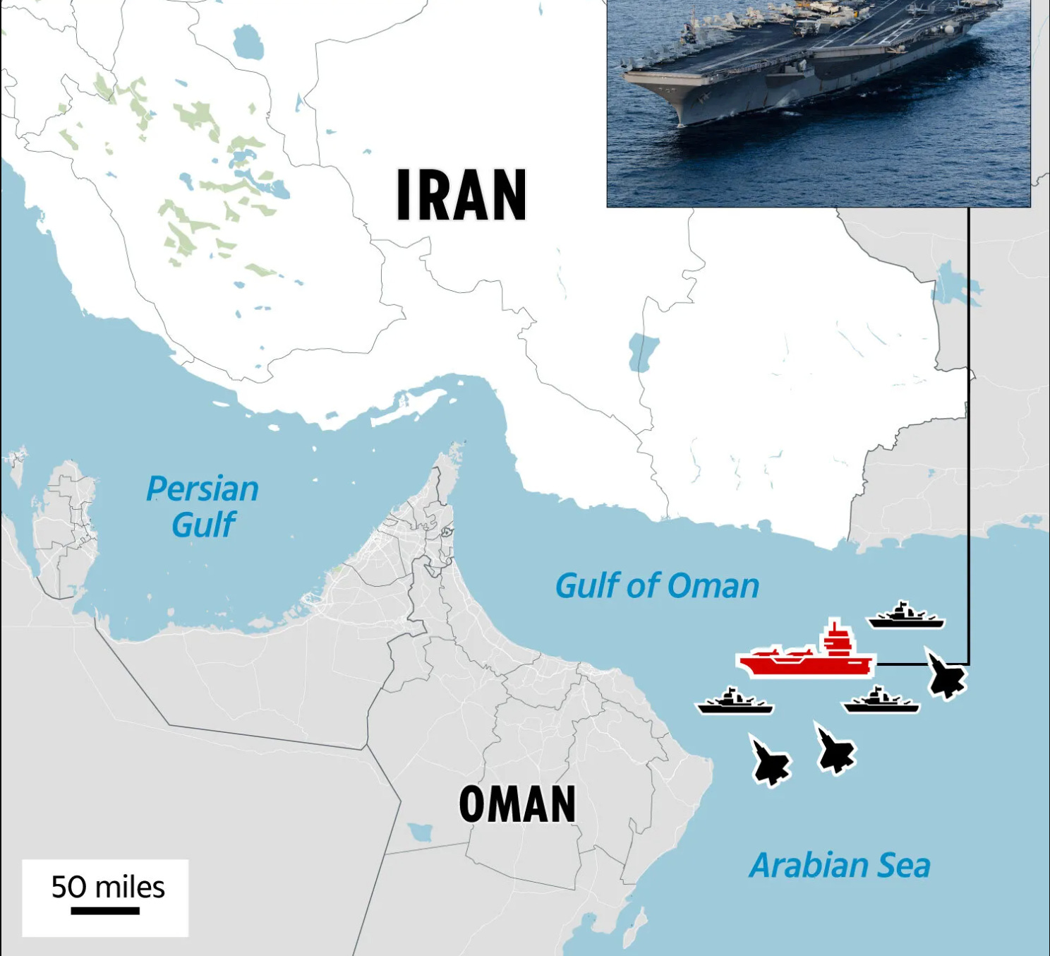 “Una enorme Armada se dirige a Irán. Se mueve rápidamente, con gran poder, entusiasmo y determinación. Es una flota más grande que la enviada a Venezuela, encabezada por el gran portaaviones Abraham Lincoln. Al igual que con Venezuela, está lista, dispuesta y capacitada para cumplir rápidamente su misión, con rapidez y violencia, si es necesario”, amenazó Donald Trump en su red social el 27 de enero de 2026.