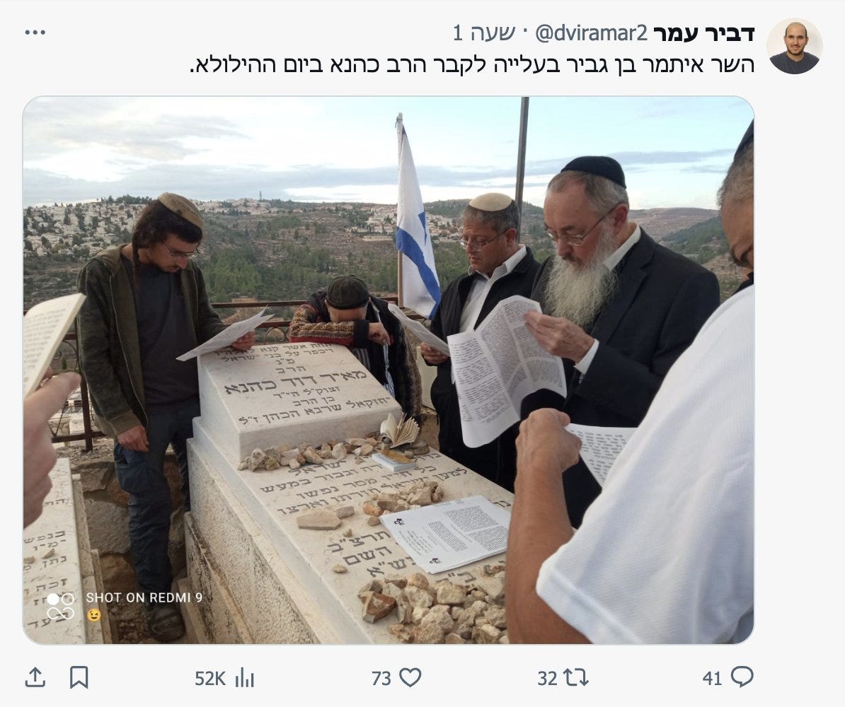 Esto es lo que cree Ben Gvir, que en noviembre de 2024 volvió a visitar la tumba de Kahane.