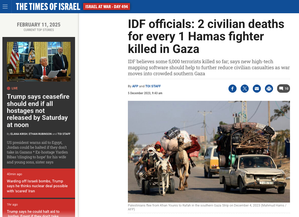Lo cual ya era una cifra manipulada, porque si a algo corresponde, es al número de mujeres y niños asesinados por cada hombre, y no todos los hombres pertenecen a Hamás. Estimaciones más realistas indican que, por lo menos, mataron a cuatro civiles por cada militante.