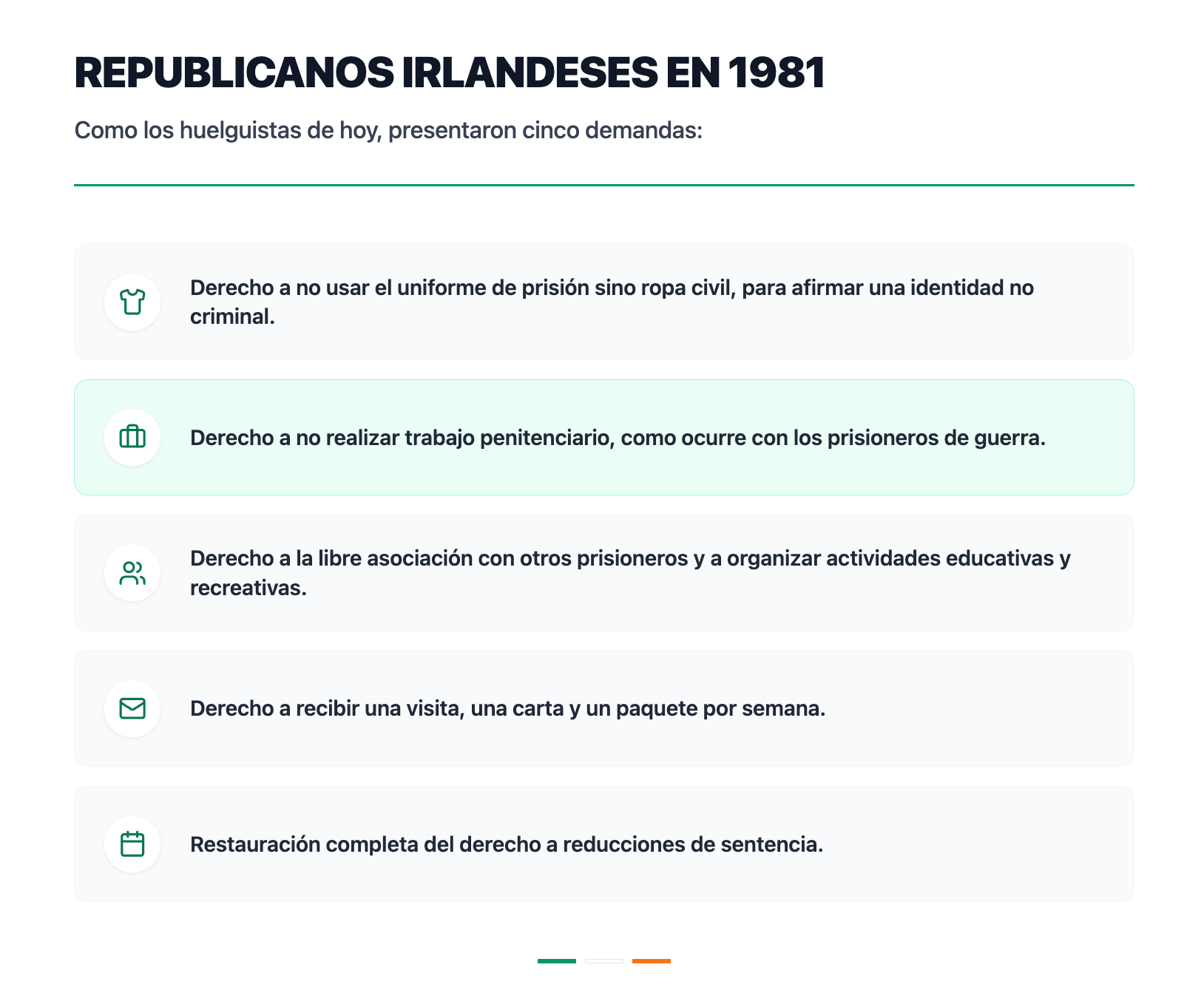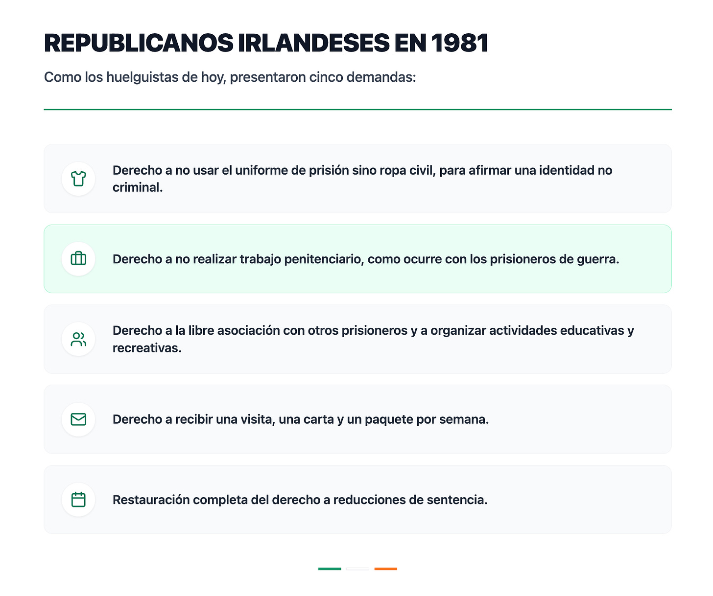 Los prisioneros fueron objeto de una estrategia gubernamental de “criminalización” de los insurgentes que buscaba despojar a los miembros del Ejército Republicano Irlandés Provisional (IRA) y el Ejército de Liberación Nacional Irlandés (INLA) de cualquier legitimidad política, presentándolos como meros criminales y no como combatientes en una guerra anticolonial.