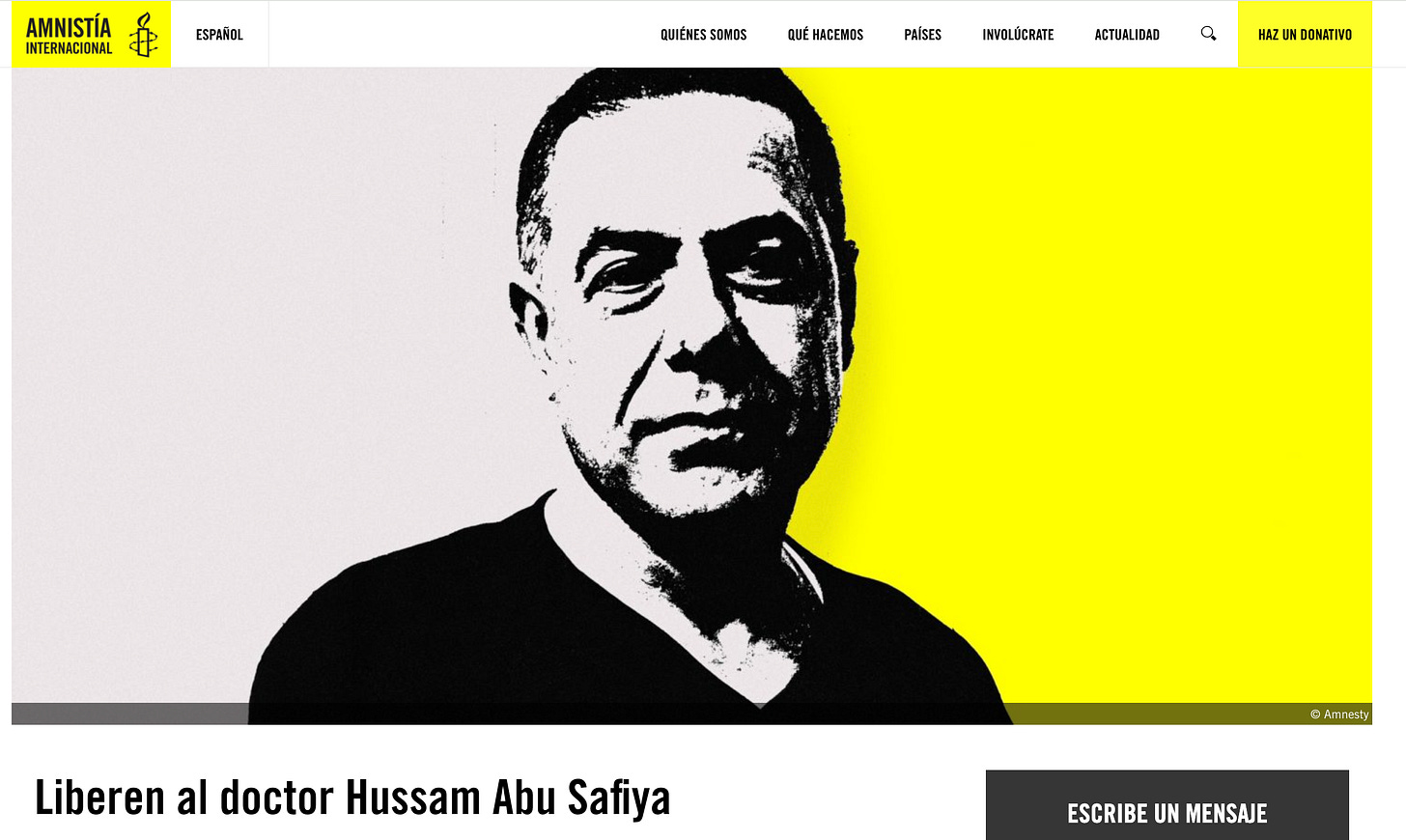 “Liberen inmediata e incondicionalmente al Dr. Hussam Abu Safiya junto con otros defensores de derechos humanos palestinos detenidos”.