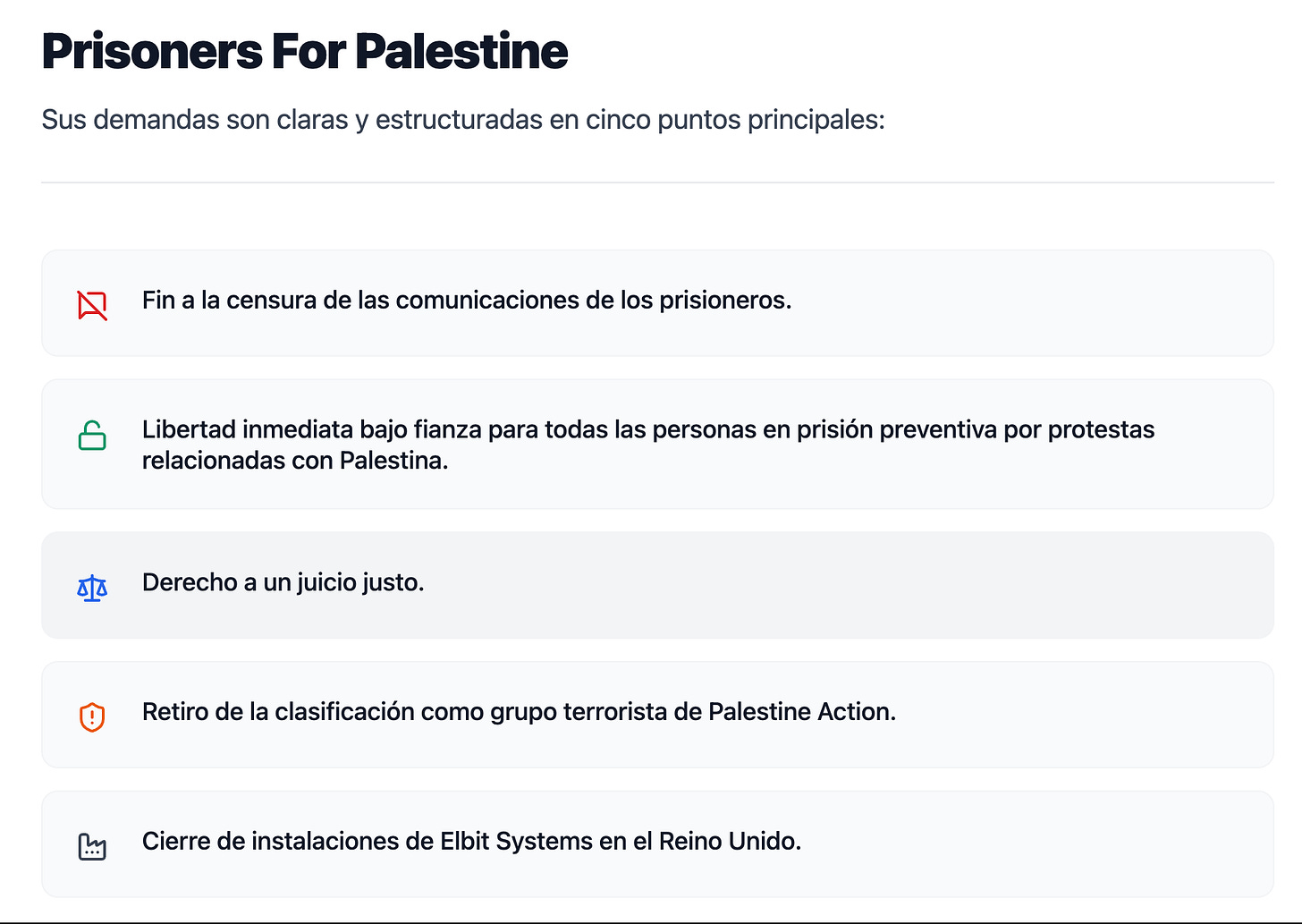 Ocho activistas del grupo Palestine Action presos por acciones pacíficas directas contra intereses militares iniciaron la huelga de hambre “Prisioneros por Palestina” el 2 de noviembre, aniversario de la Declaración Balfour de 1917 por la que Londres se comprometió a crear un estado judío. Se trata de la mayor protesta de este tipo en cárceles del Reino Unido desde la huelga de hambre irlandesa de 1981.