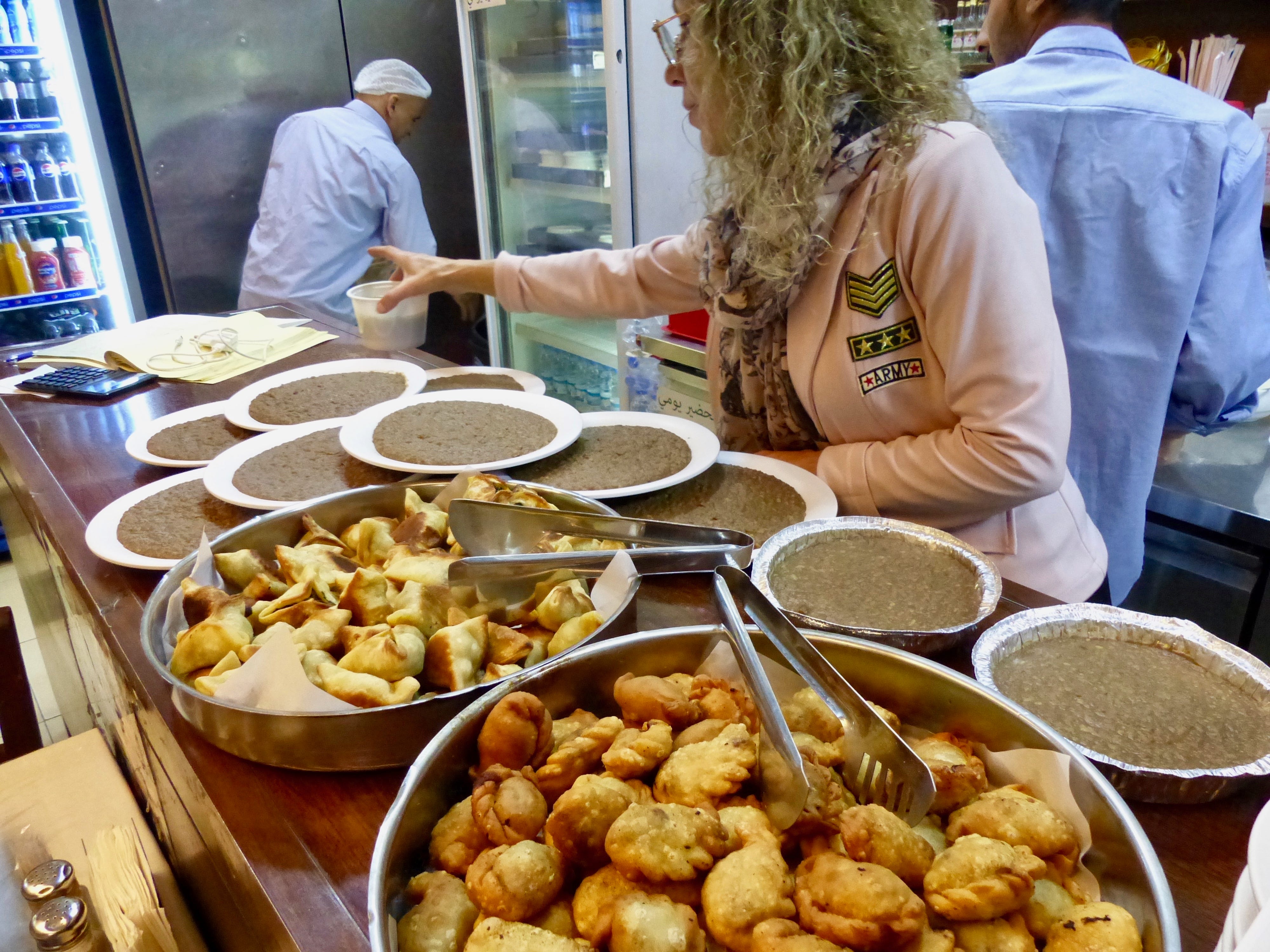Hoy como siempre, el gran anfitrión recibe a los visitantes con su famoso “Welcome Lebanon!”, les explica cuáles son los deliciosos platillos del día, cuscús y kibbeh, además de los clásicos cotidianos como moutabal, fava y las ensaladas fattouch y tabbouleh.