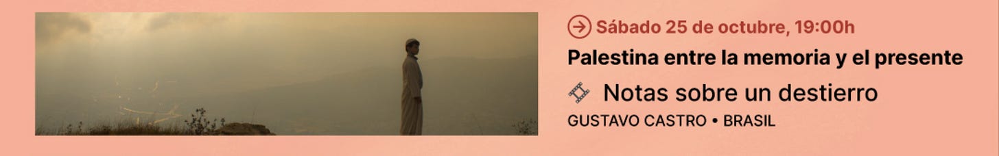 Proyección del documental “Notas sobre un destierro” y al final, diálogo sobre memoria, identidad y resistencia desde Palestina con el director brasileño Gustavo Castro y yo, con la moderación de Pau Montagud.