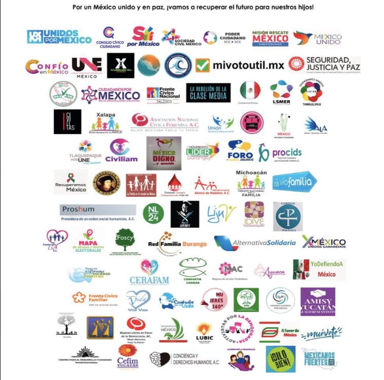 La derecha mexicana (sobre todo aquella ligada al empresario Claudio X. González) apuesta a que un carrusel de membretes puede generar la impresión de una marea de votos. Y que reuniéndolos en fondos de entrevistas de prensa -los oradores sonriendo sobre un surtido rico de colores y letras- y volantes de redes sociales para simular una movilización ciudadana y apartidista, podrá convencer al electorado de que su apoyo a ciertos partidos es espontáneo, honesto y crítico.