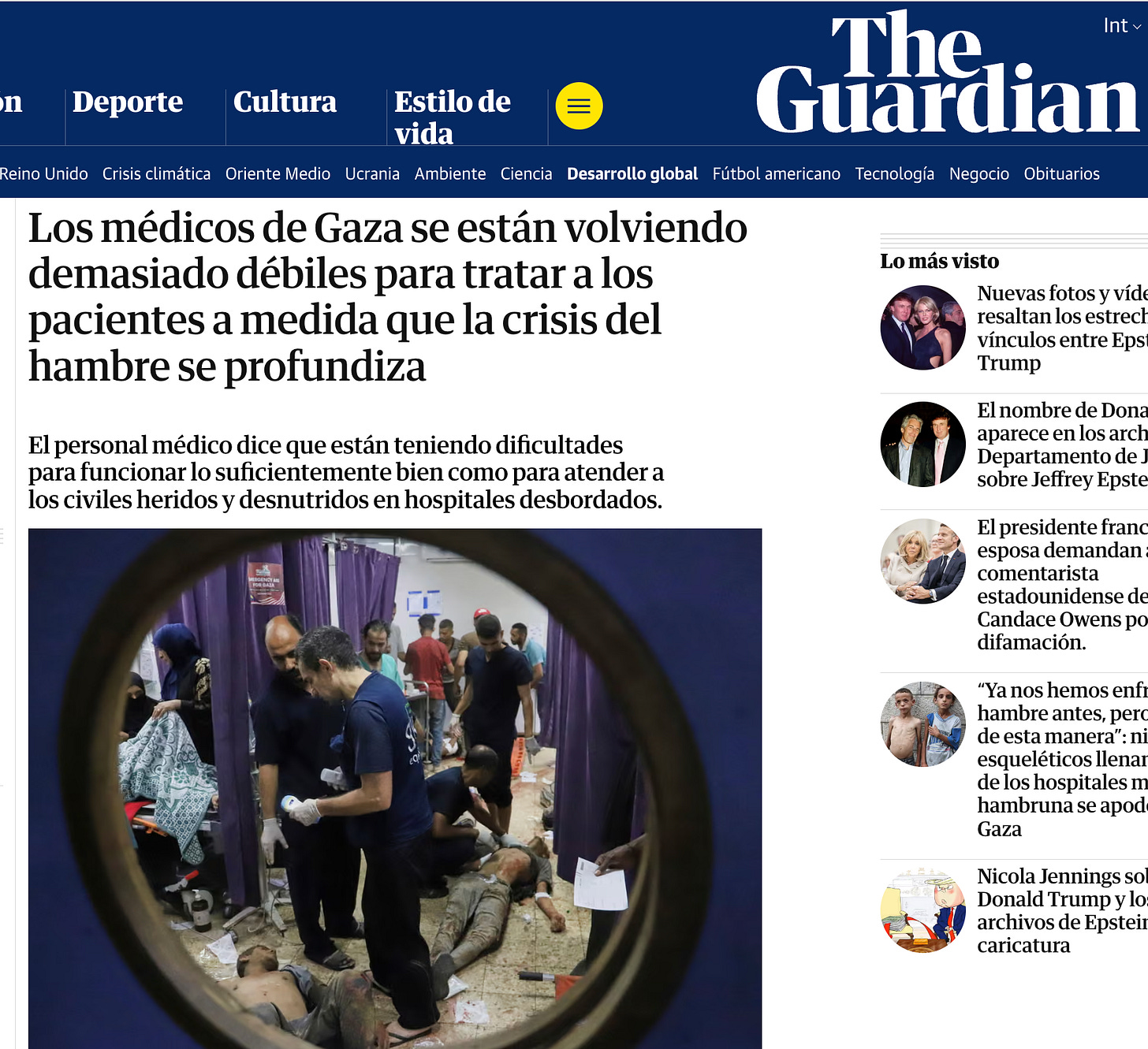 A lo largo de 19 meses de genocidio, el flujo de fotografías de niños, mujeres y hombres despedazados por las bombas israelíes ha sido mucho, mucho más que abrumador. A quienes revisamos diariamente los canales de periodistas especializados en Gaza, en Telegram y WhatsApp, parece ya no quedarnos espacio mental y emocional para albergar más imágenes. Pero siempre hay rincones disponibles, que ahora se están llenando con las figuras más que famélicas, de personas muertas o que dejaron de parecer vivas, en los huesos, cuero sobre huesos, ojos en máscaras de piel seca que han dejado de ver. Sí, como los que solíamos ver solo en los registros de los campos de concentración nazis. Exactamente iguales.