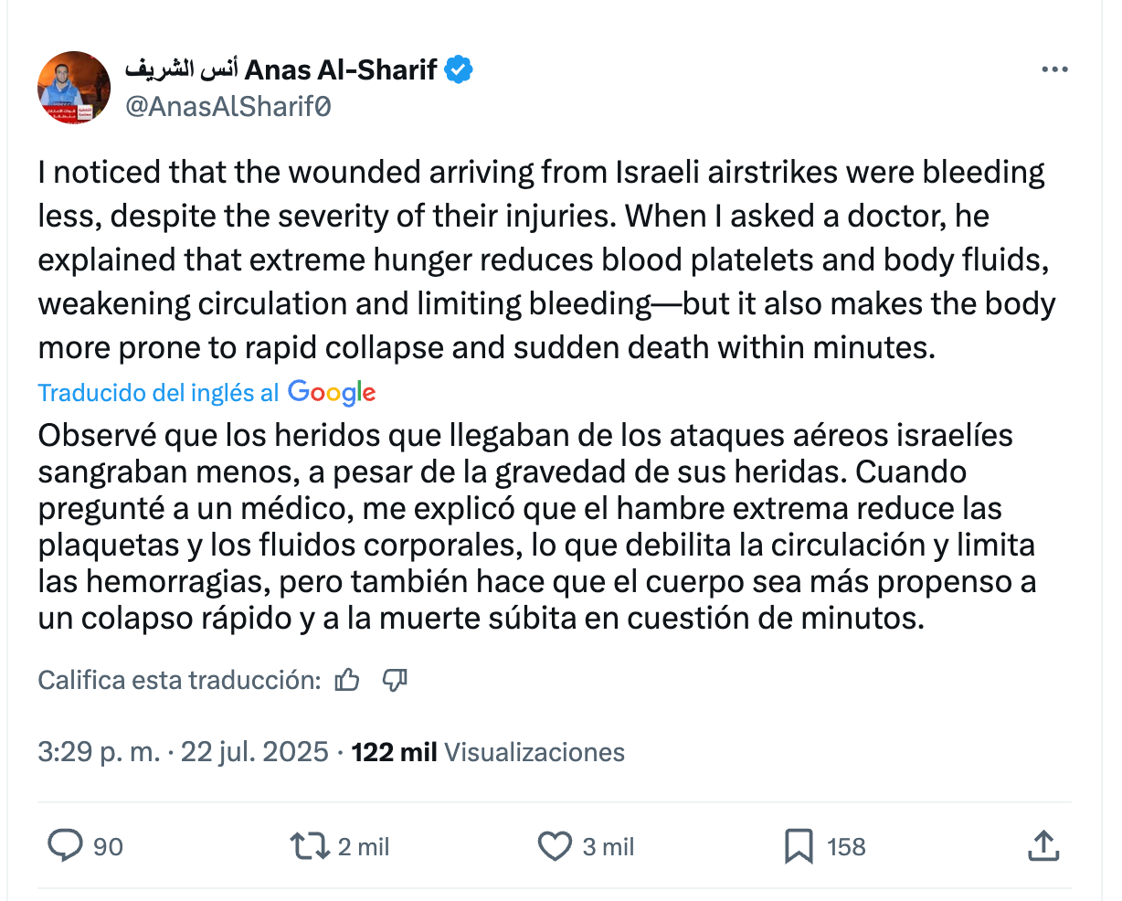 Lo anterior fue informado por un gran sobreviviente, el periodista Anas al-Sharif.