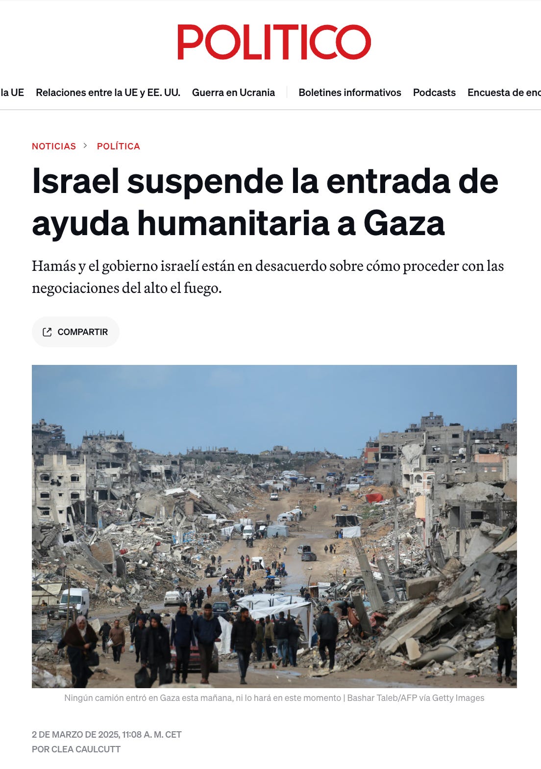 Desde entonces, se han sucedido nuevas medidas del mismo tipo, hasta la más radical de todas: el bloqueo absoluto de Gaza, que inició el 2 de marzo.