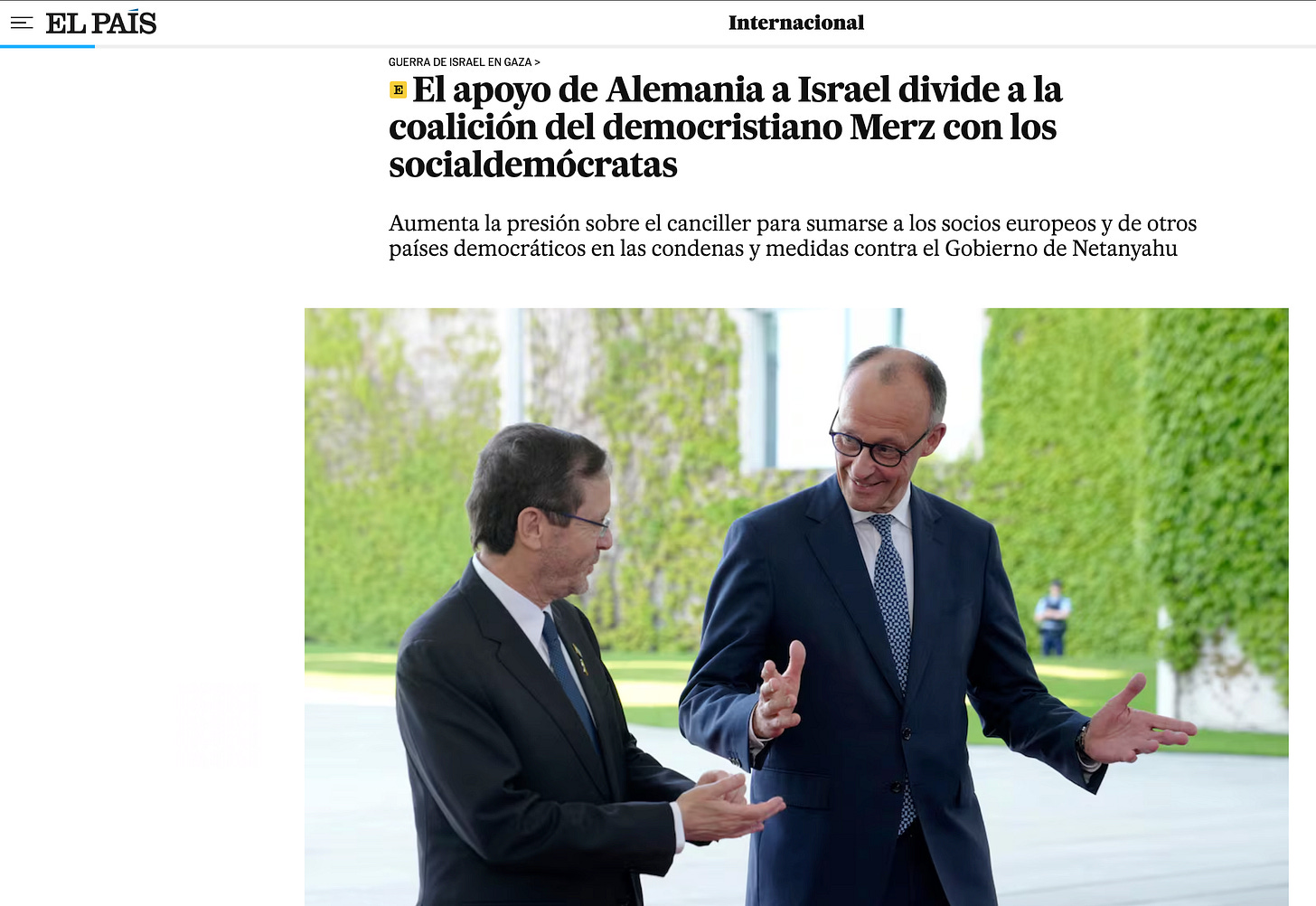 El 25 de julio, estas tensiones condujeron a que la República Federal de Alemania, por primera vez desde su fundación en 1949, tomara una postura crítica con Israel al sumarse a un comunicado conjunto con Francia y Reino Unido, exigiéndole que ponga fin a “la catástrofe humanitaria” en la Franja.