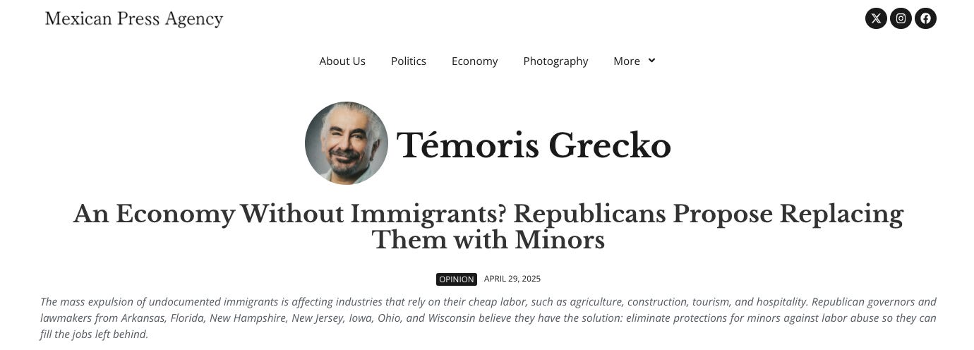 La expulsión masiva de migrantes sin documentos está impactando las industrias que dependen de su mano de obra barata, como la agricultura, la construcción, el turismo y la hostelería. Gobernadores y congresistas republicanos de Arkansas, Florida, Nueva Hampshire, Nueva Jersey, Iowa, Ohio y Wisconsin creen tener la solución: eliminar normas que protegen a los menores de edad del abuso laboral para que ocupen los empleos abandonados.