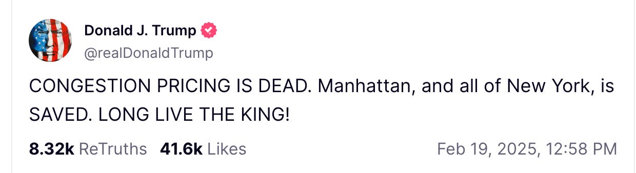 Días antes, al festejar que su gobierno había desechado un proyecto de la alcaldía demócrata de Nueva York para controlar el tráfico en Manhattan, se asumió como rey: