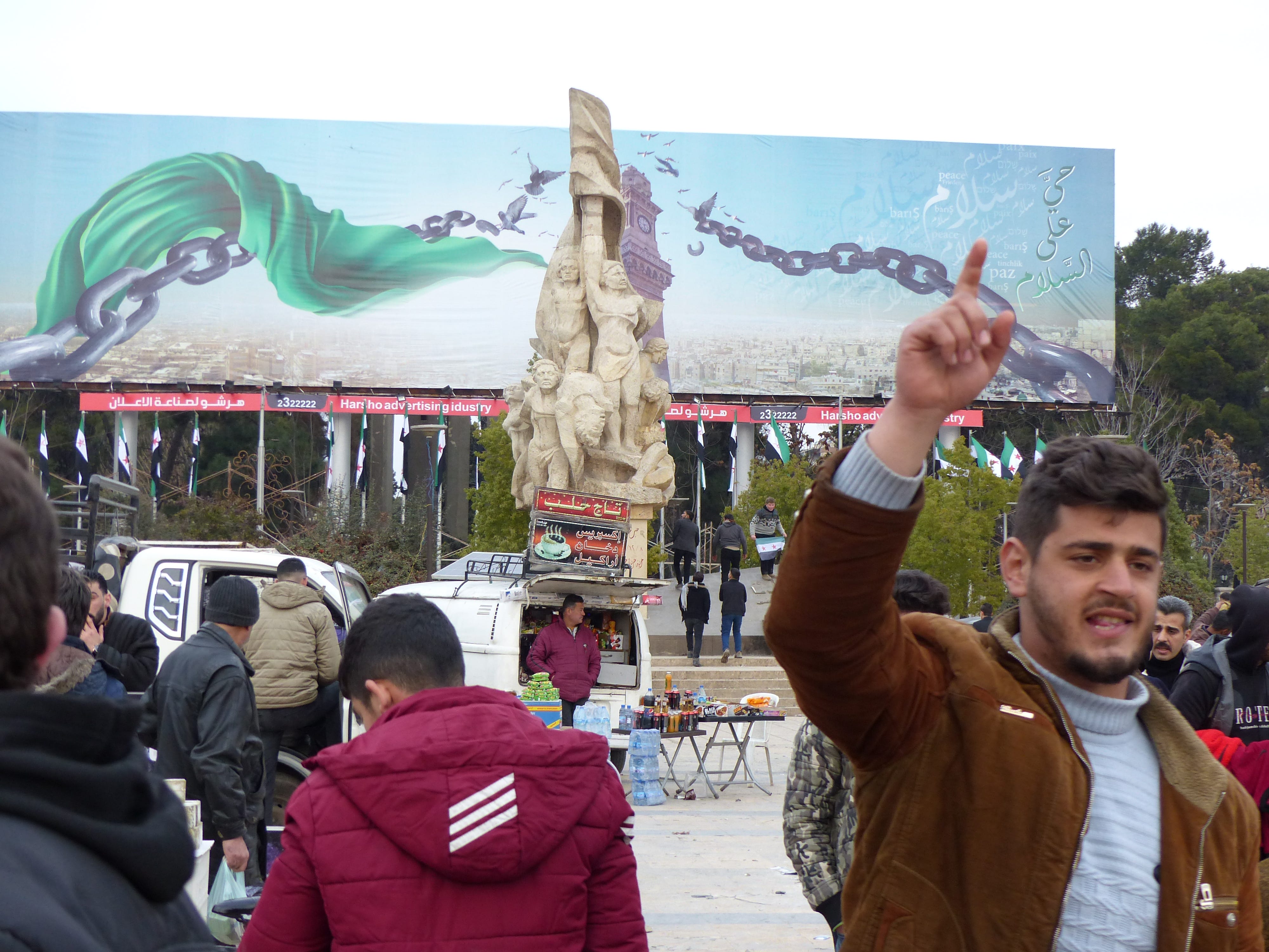 Aunque el evento estaba programado a las 15 horas, comenzó antes. Solo alcanzo a ver a un grupo con las banderas de la revolución que grita consignas por unos pocos minutos antes de empezar a despedirse. Converso con algunas personas que lamentan los terribles tiempos de la guerra. Dicen que el rojo con el que tiñeron la corriente hoy no mancha como la sangre que fluía entonces. Un recién egresado de ingeniería, Ahmed Bishara, que solo tenía once años cuando fue la masacre pero la recuerda vivamente: “Alepo sufrió más de la cuenta”.