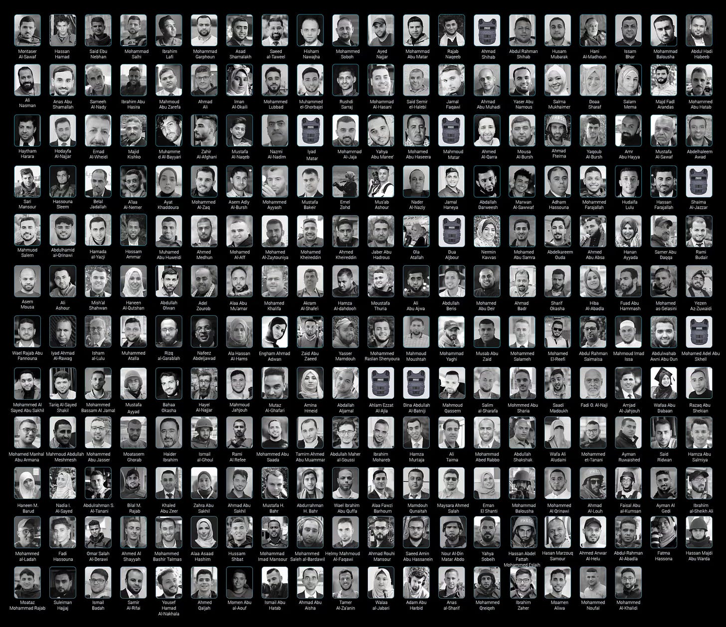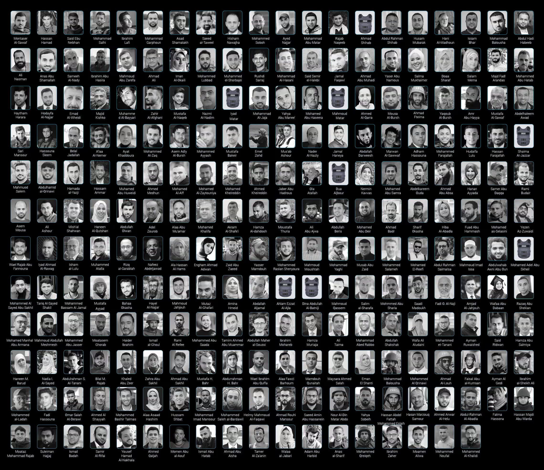 Los nombres de esta lista no sólo representan la pérdida de vidas, futuros y familias en duelo, sino también la pérdida de una generación de periodistas asesinados mientras hacían su trabajo en los entornos más aterradores y devastadores y cuya valentía y dedicación al cubrir este conflicto no pueden ser reemplazadas.