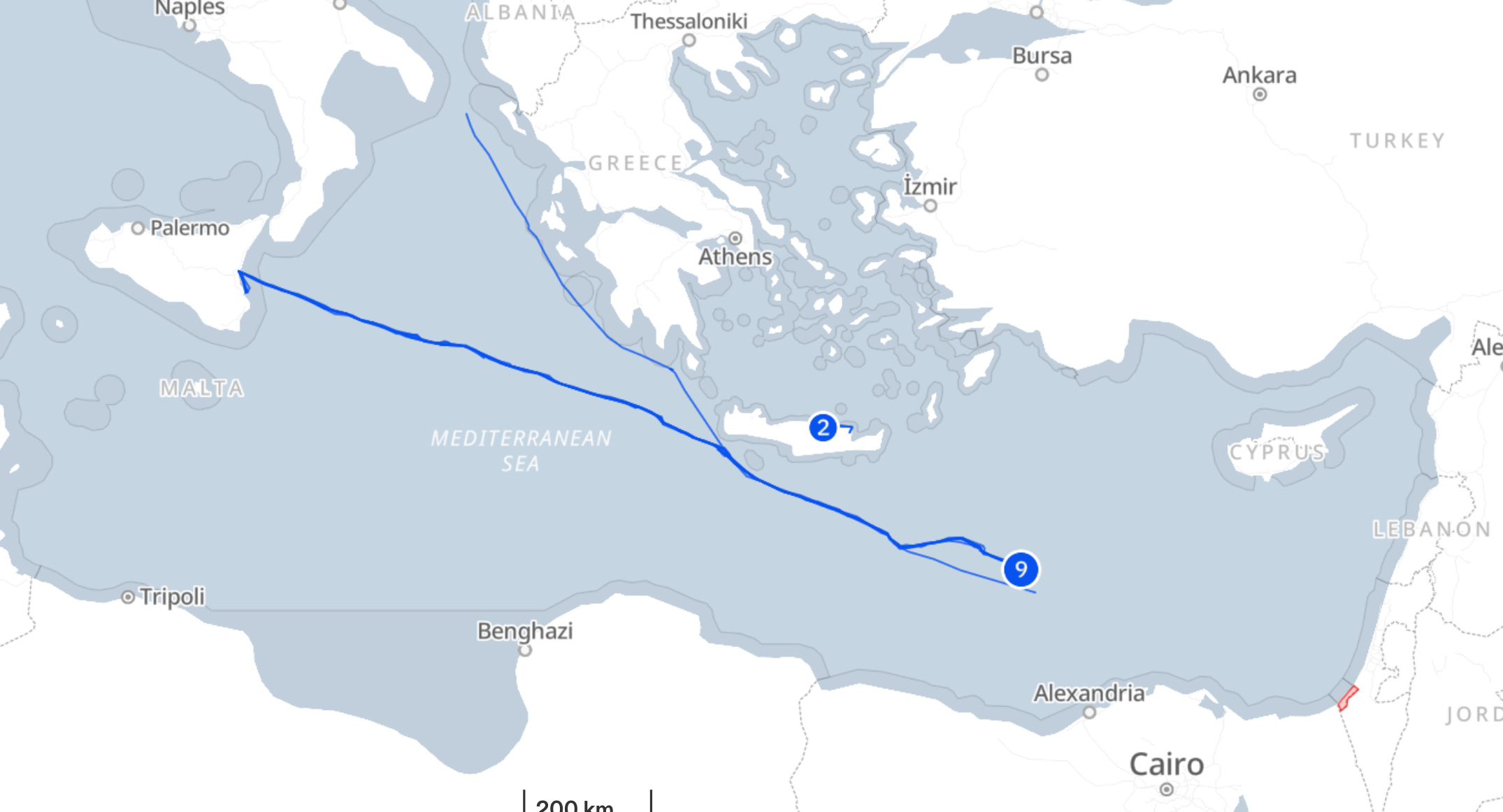 La Thousand Madleens to Gaza x Freedom Flotilla, que zarpó el 27 de septiembre de Italia, sigue navegando el Mediterráneo y debería llegar a la zona de riesgo alrededor del marte. está en camino y deberá aproximarse a Gaza en pocos días.
