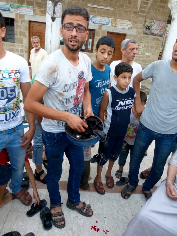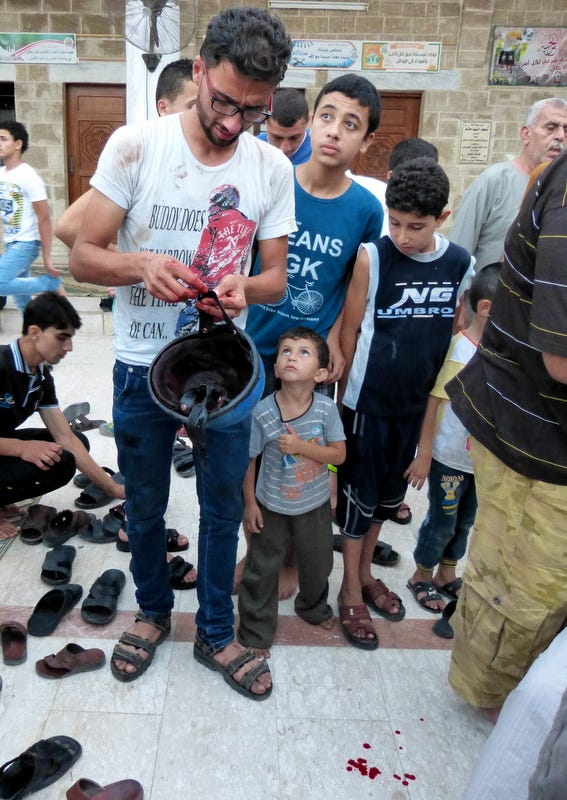Más tarde, trasladaron el cuerpo a la mezquita de Shojaiya. Sentado en una silla, el padre de Rami parecía morir.