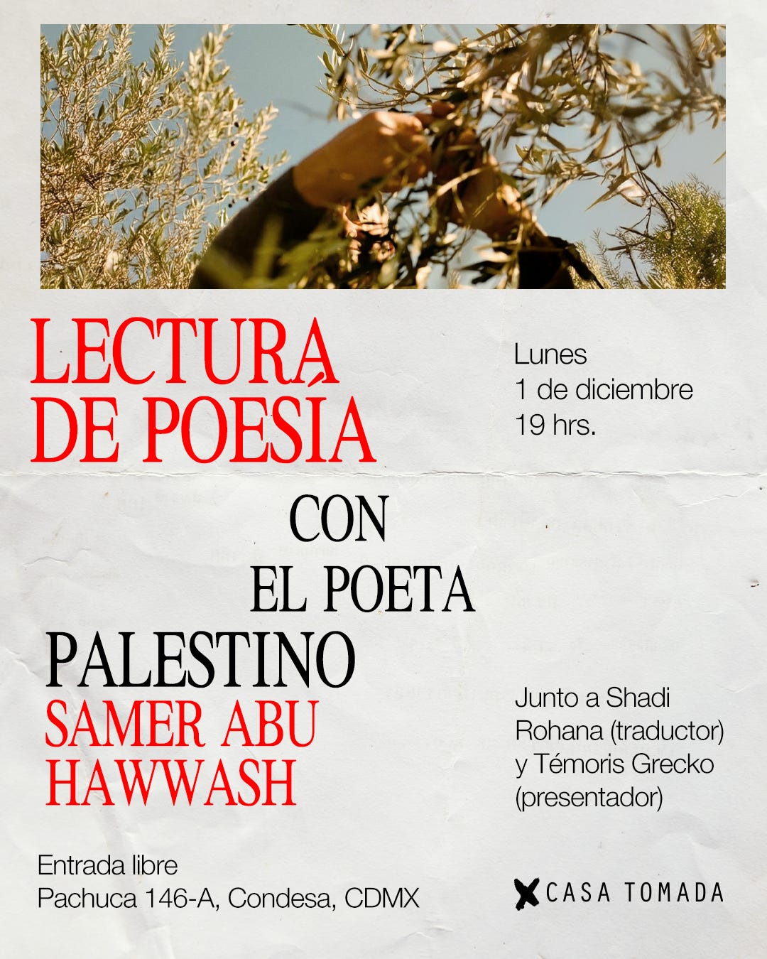 Rumbo a la FIL de Guadalajara, el poeta palestino Samer Abu Hawwash hará una lectura en árabe con la traducción del académico palestino Shadi Rohana. Yo participaré como presentador.